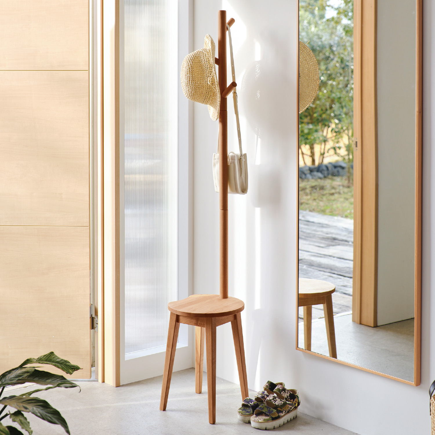 )  【ベルメゾン】天然木アルダー材を使ったスツール付きハンガーラック