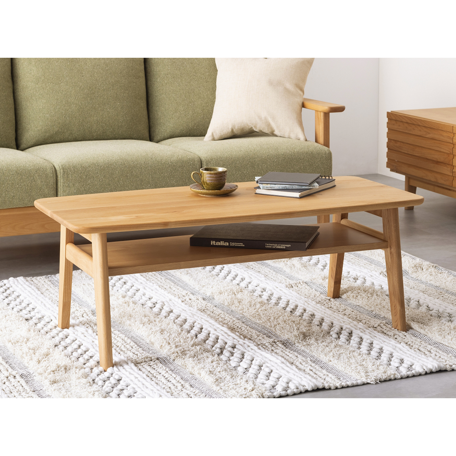 )  【ベルメゾン】天然木アルダー材の棚付きリビングローテーブル