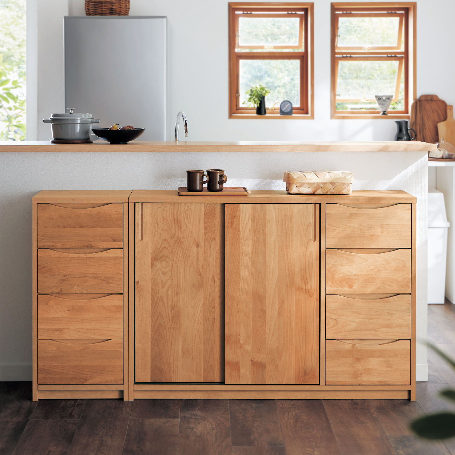 )  【ベルメゾン】あたたかみのあるアルダー材のカウンター下引き戸キャビネット