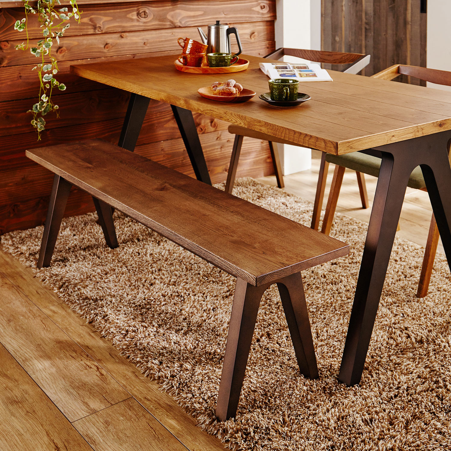 )  【ベルメゾン】アイアン脚風インダストリアルダイニングベンチ