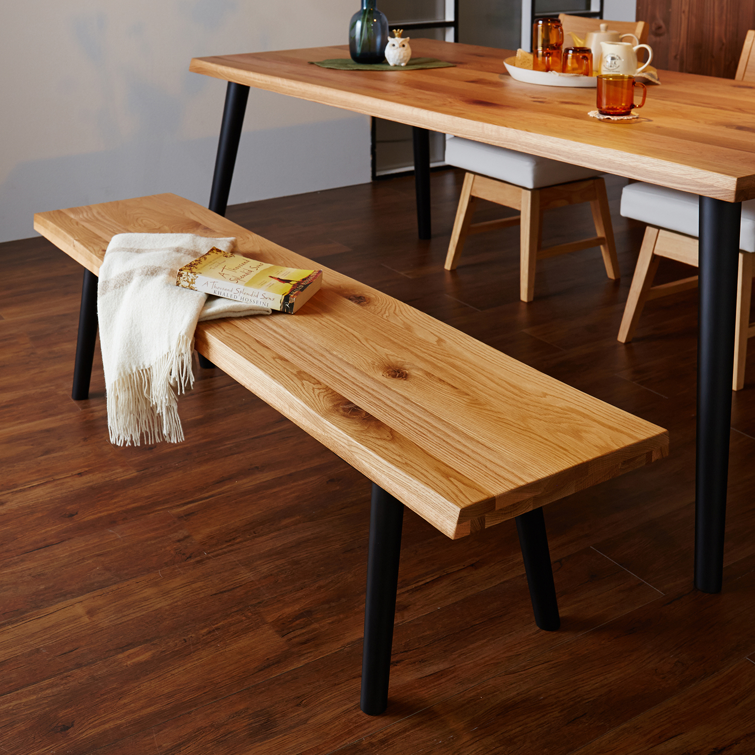 )  【ベルメゾン】重厚感のある天然木オーク材のダイニングベンチ
