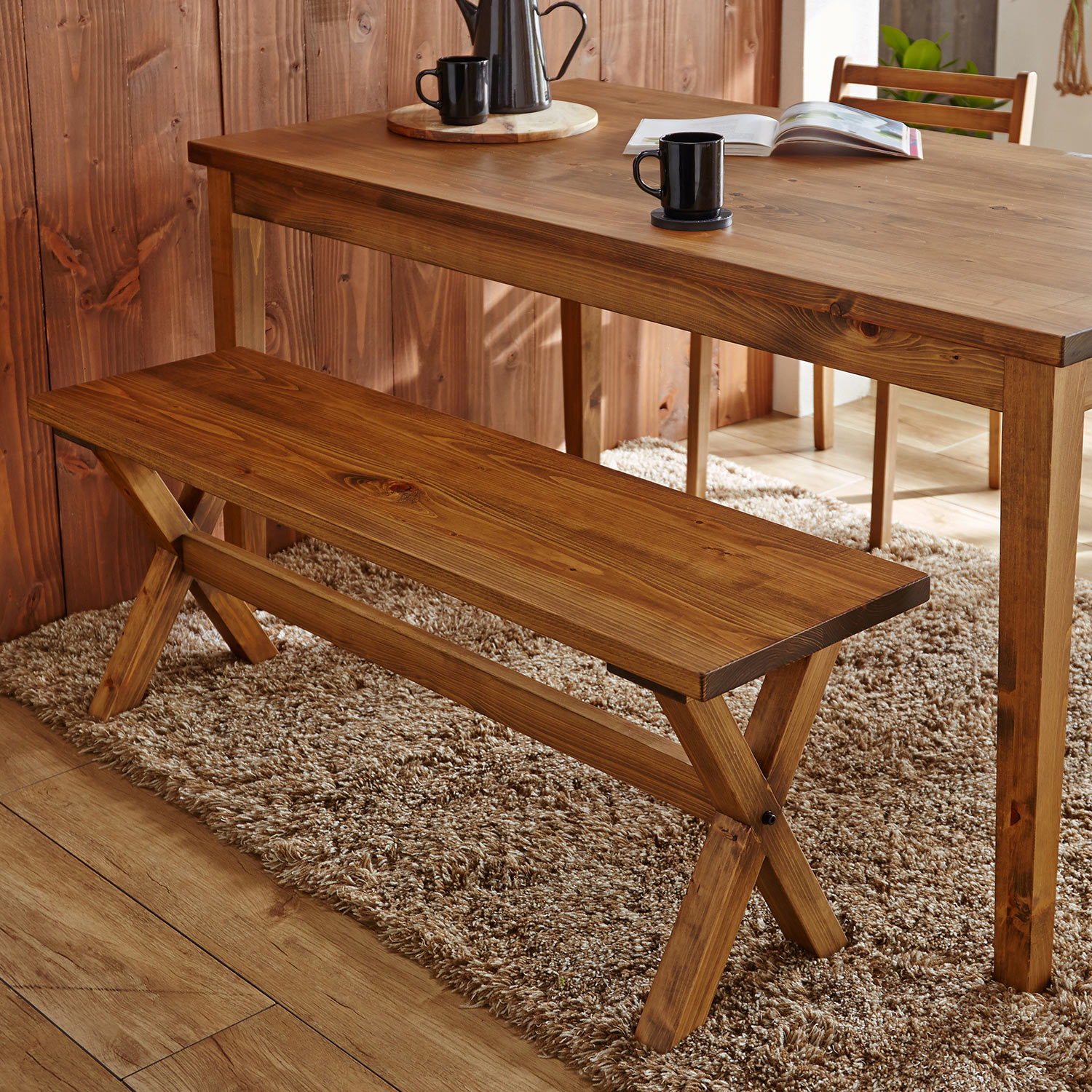 )  【堀田木工所】セラミック塗装でお手入れ簡単 アルダー材のダイニングベンチ