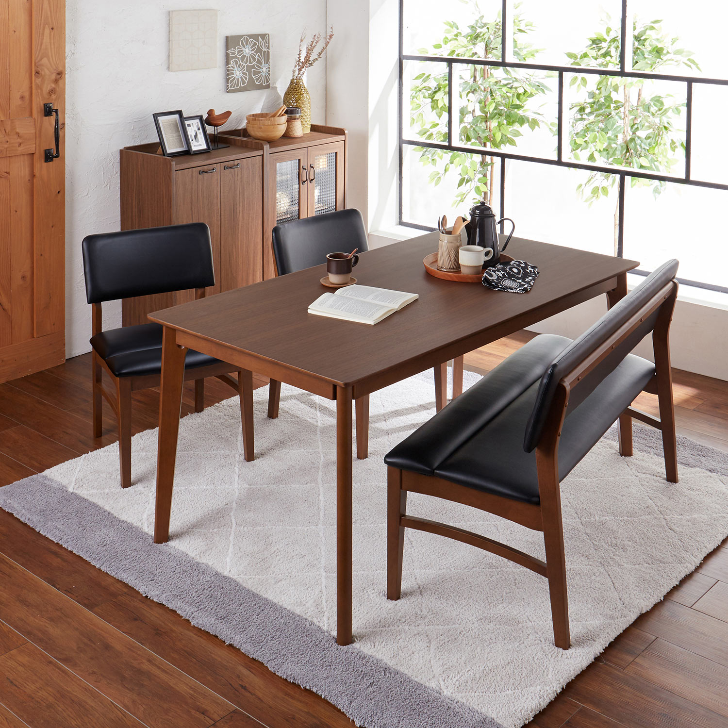 )  【ベルメゾン】ベンチが収納できる!バタフライ伸長式天板のダイニングテーブル(4点セット)
