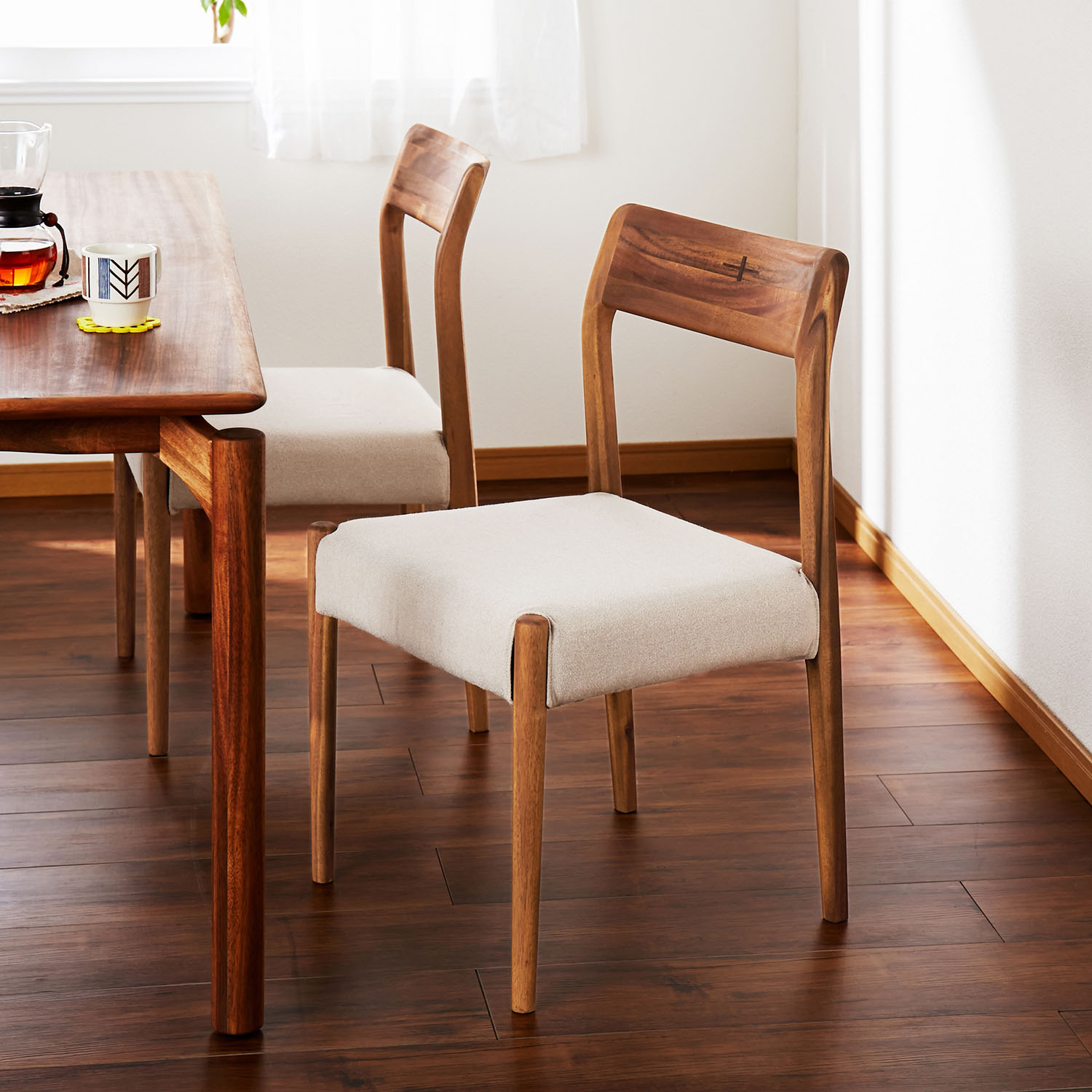 )  【ベルメゾン】ファブリック座面のダイニングチェア2脚セット