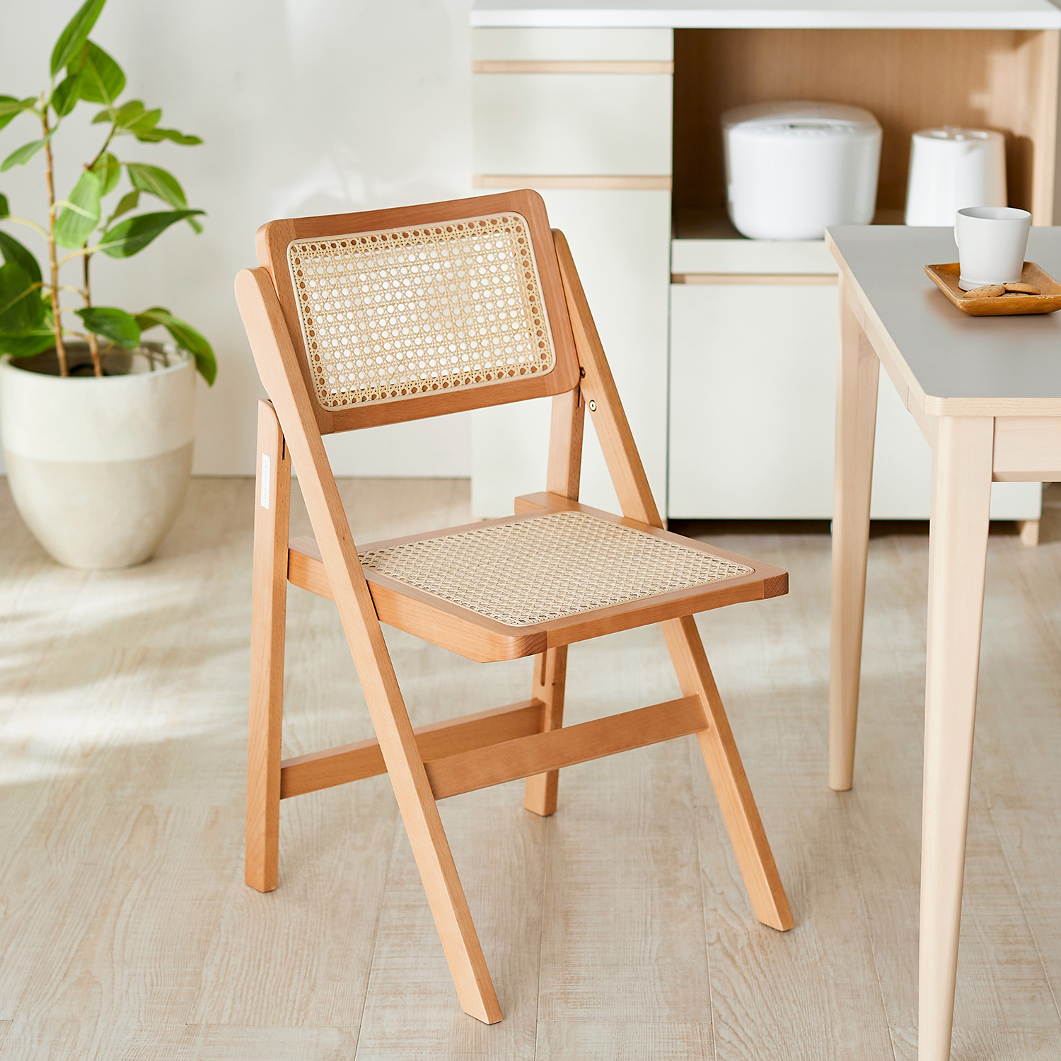 )  【ベルメゾン】かごめ編みラタンの折りたたみチェア