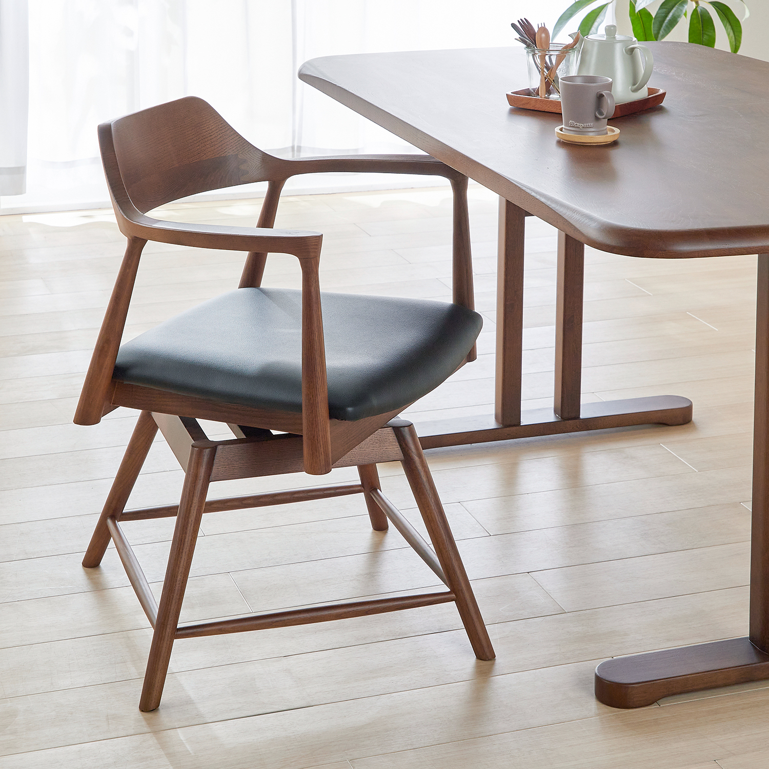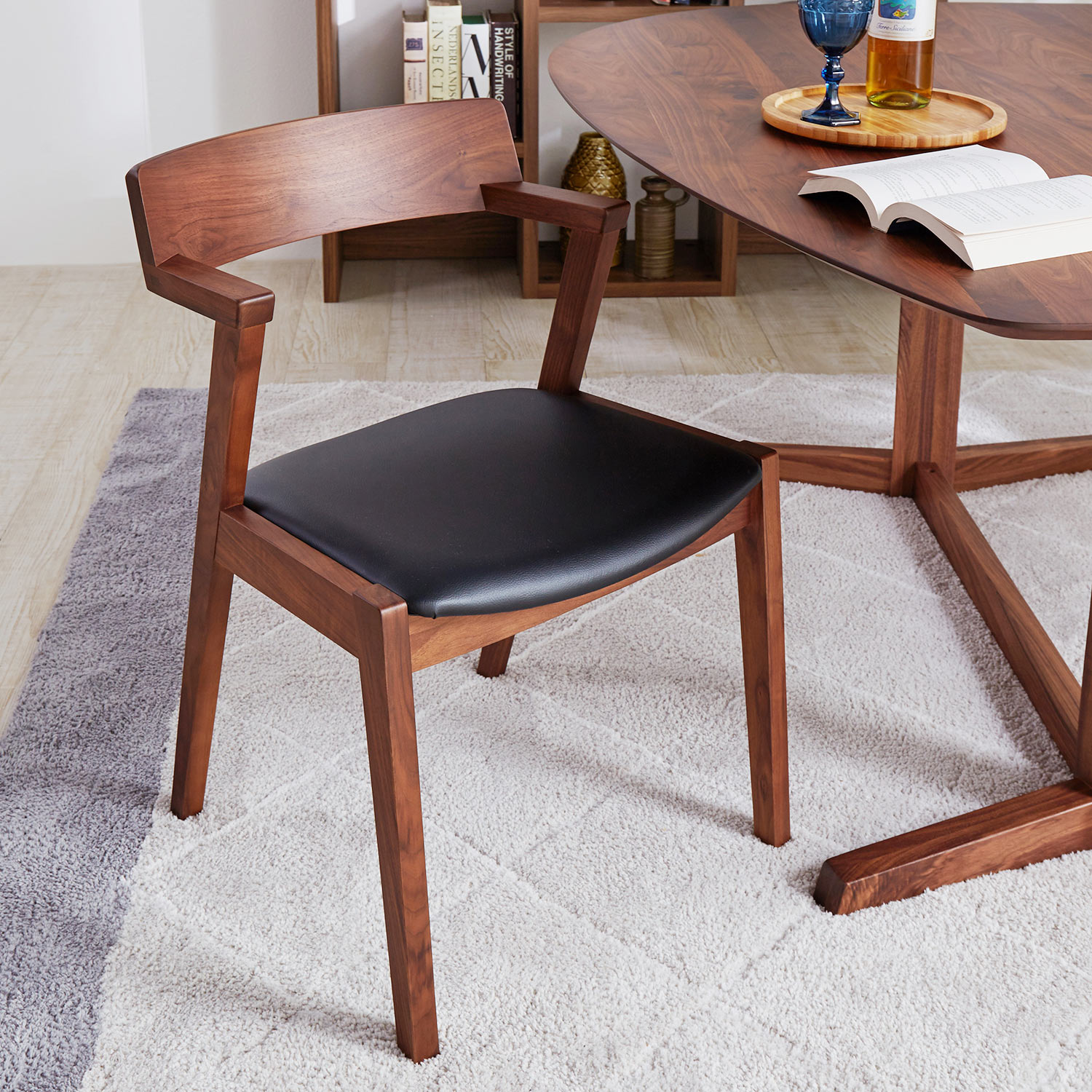 )  【ベルメゾン】木目が美しいウォルナット材のハーフアームチェア