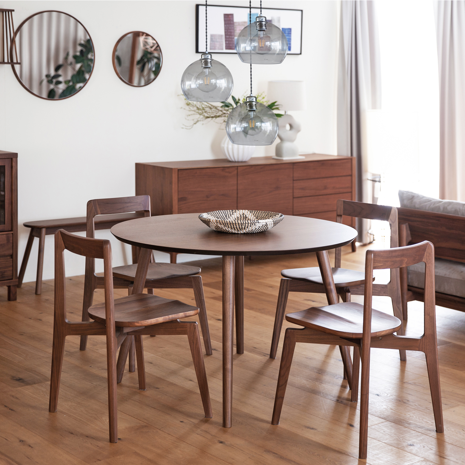 )  【高野木工/TAKANO MOKKOU】ウォルナット材の円形ダイニングテーブル【MALLOON】