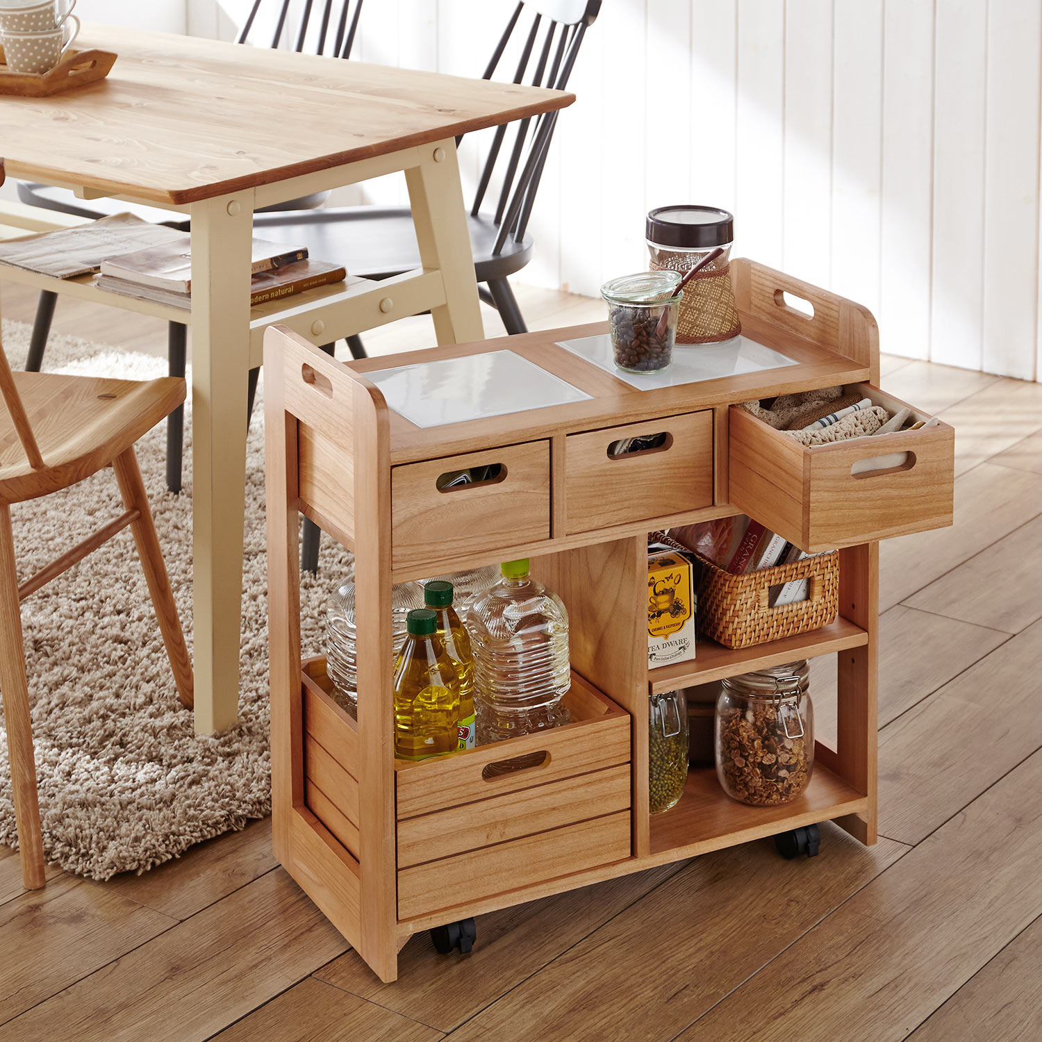 )  【ベルメゾン】タイル天板の引出し付きダイニングワゴン