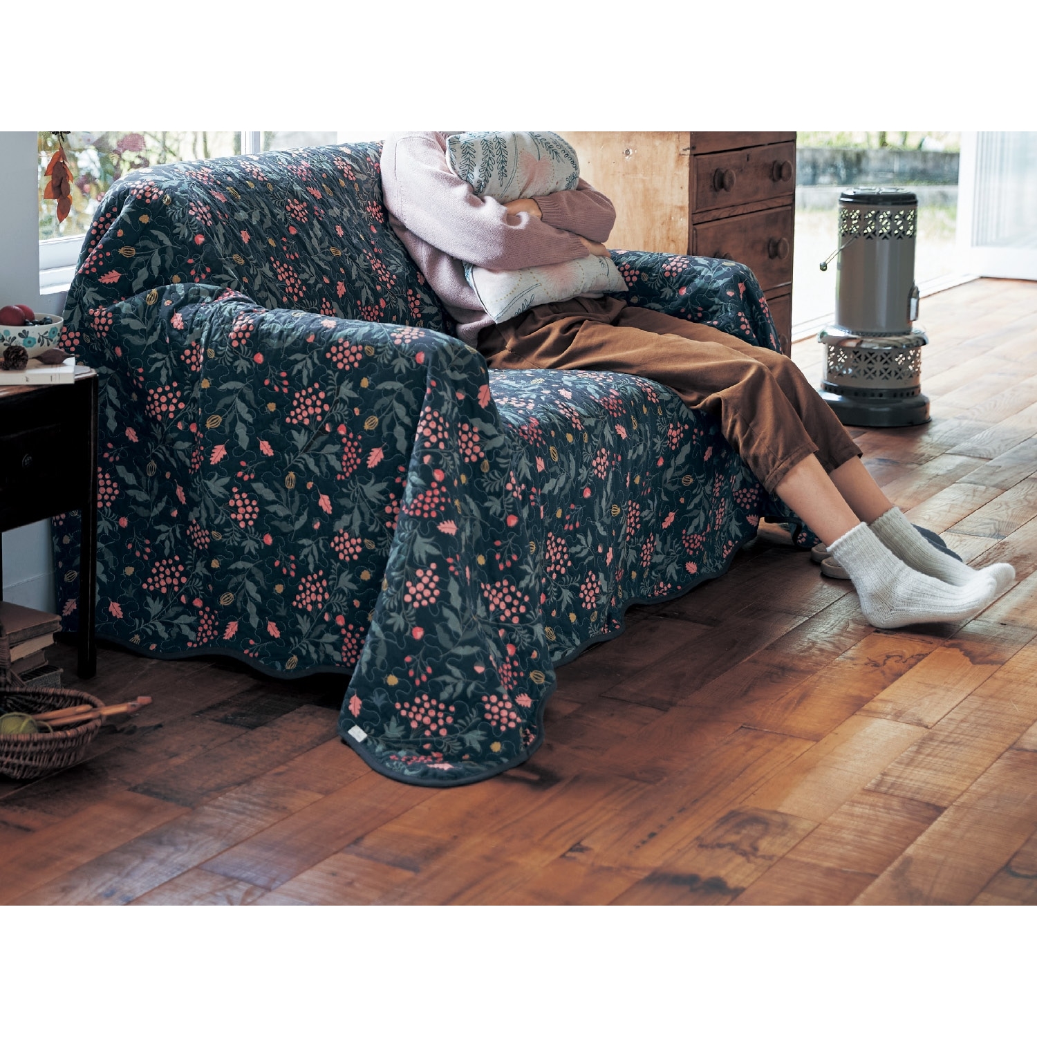)  【ミニラボ/mini labo】綿素材を使ったウォッシュキルトマルチカバー/私の果樹園 「ミニラボ」