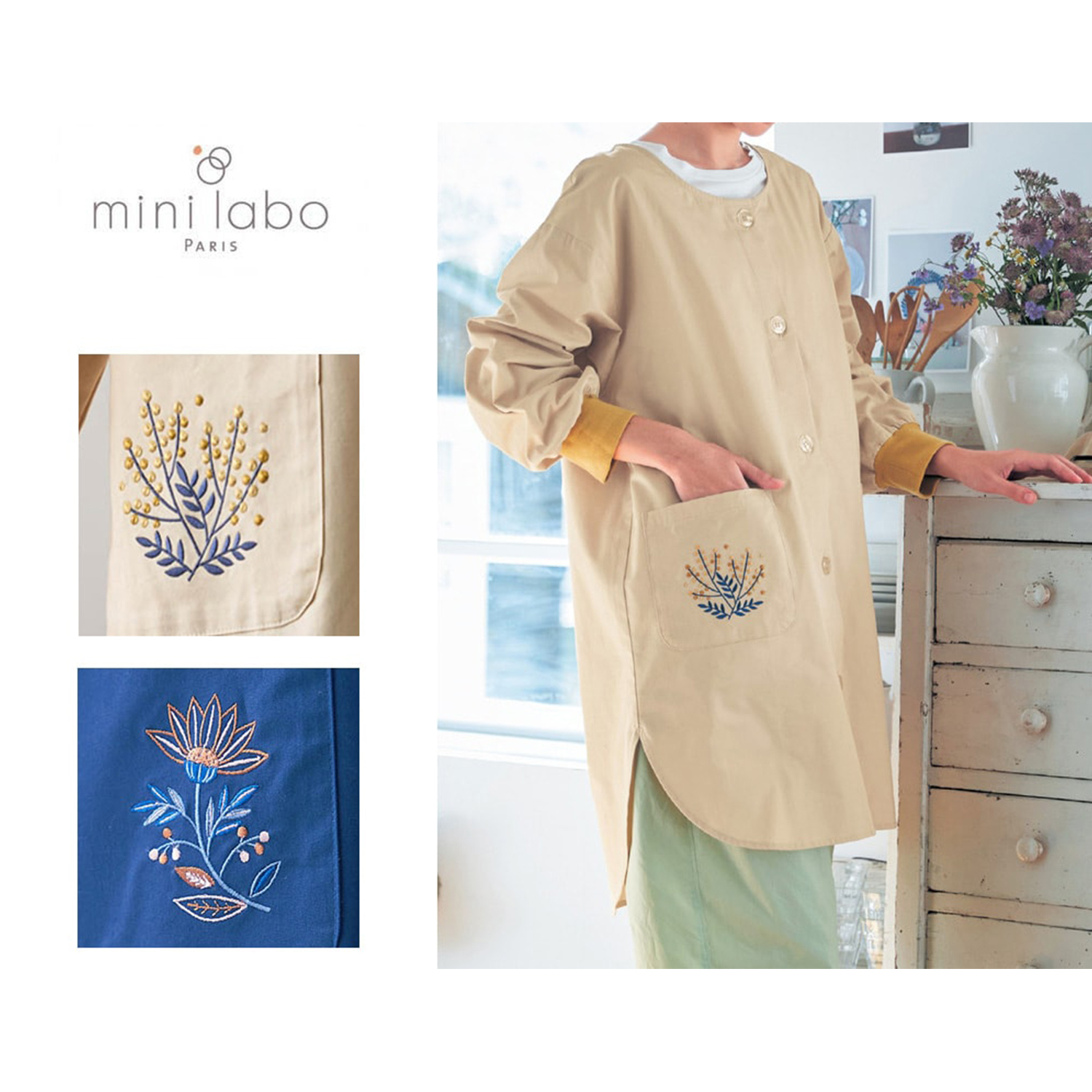 )  【ミニラボ/mini labo】さっと羽織れる前開き割烹着 「ミニラボ」