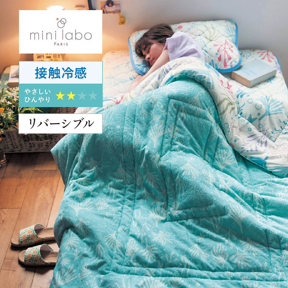 )  【ミニラボ/mini labo】綿素材を使った接触冷感リバーシブルキルトケット/海の宝物 「ミニラボ」
