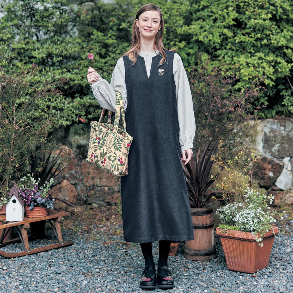 )  【ミニラボ/mini labo】着回しの幅が広がるツイル素材のノースリーブワンピース/インドの花 「ミニラボ」