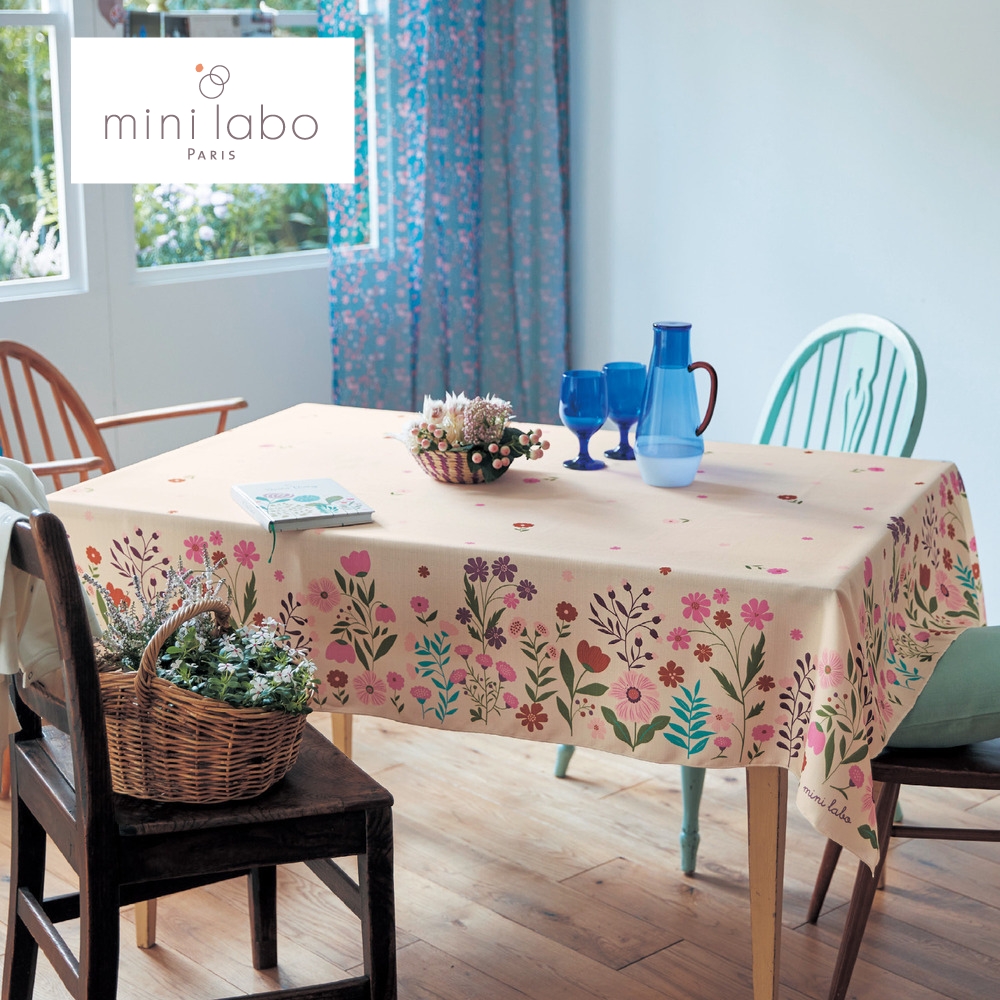 )  【ミニラボ/mini labo】撥水テーブルクロス/お花いっぱいのガーデン 「ミニラボ」