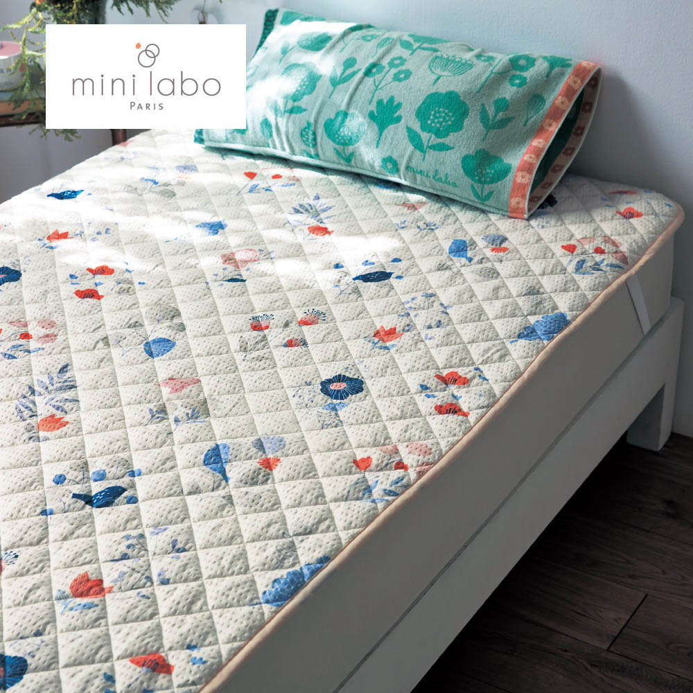 )  【ミニラボ/mini labo】さらっとした肌ざわりのリップル加工の敷きパッド/植物標本 「ミニラボ」