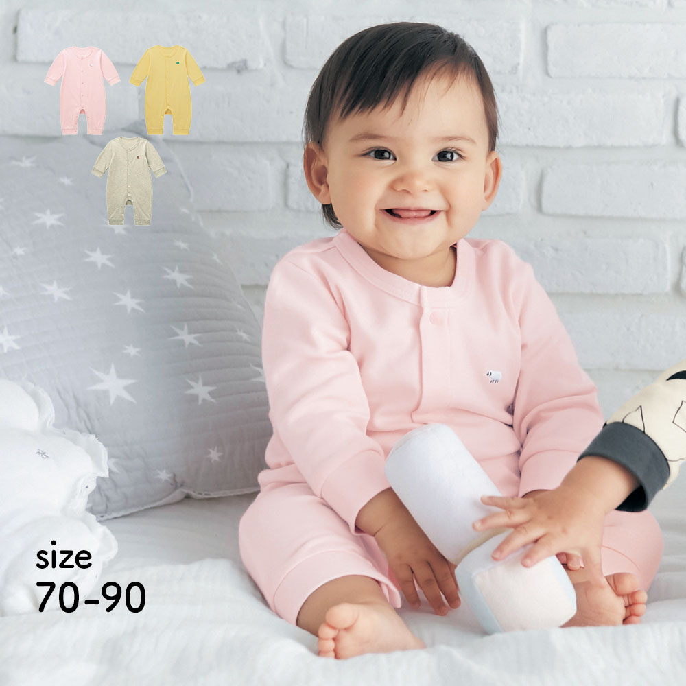 )  【ベルメゾン】ワンポイント前開きカバーオールパジャマ 【ベビー服 ベビーパジャマ 長袖】