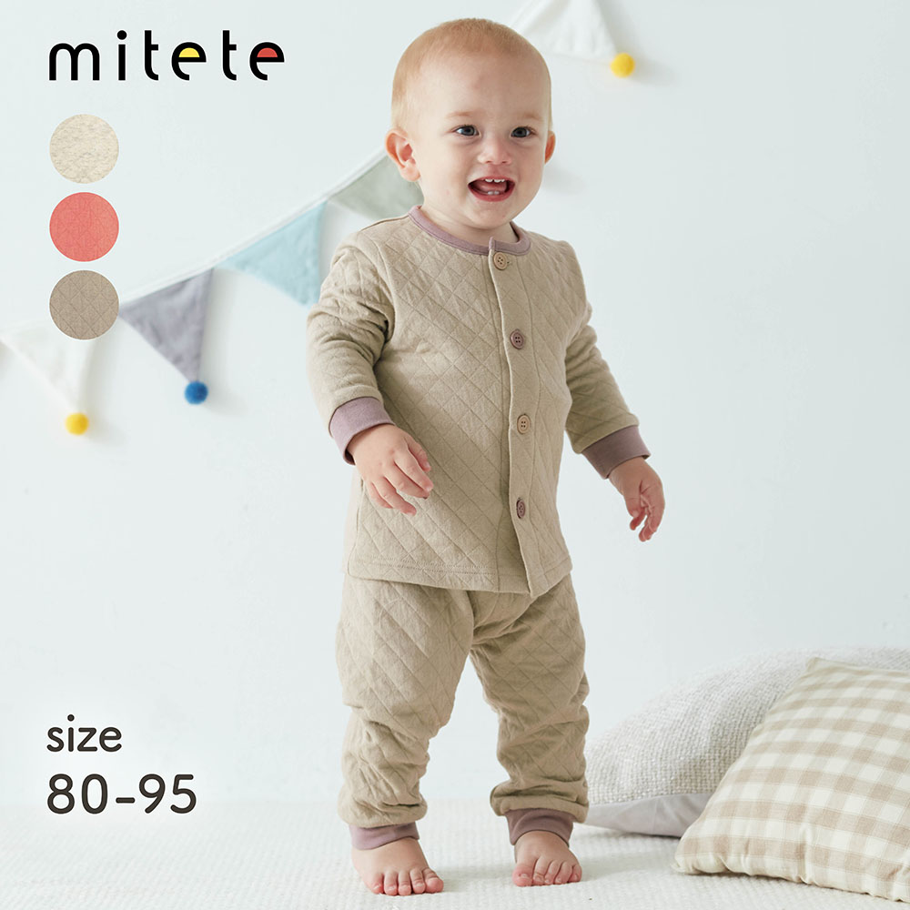 )  【ミテテ/mitete】腹巻付きニットキルト前開きパジャマ 【ベビーパジャマ】