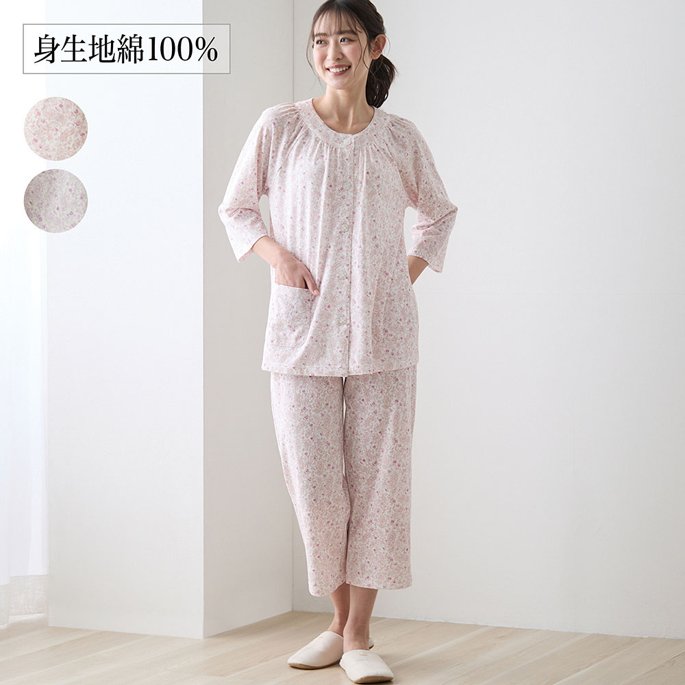 )  【ベルメゾン】コットン天竺開襟丸首パジャマ