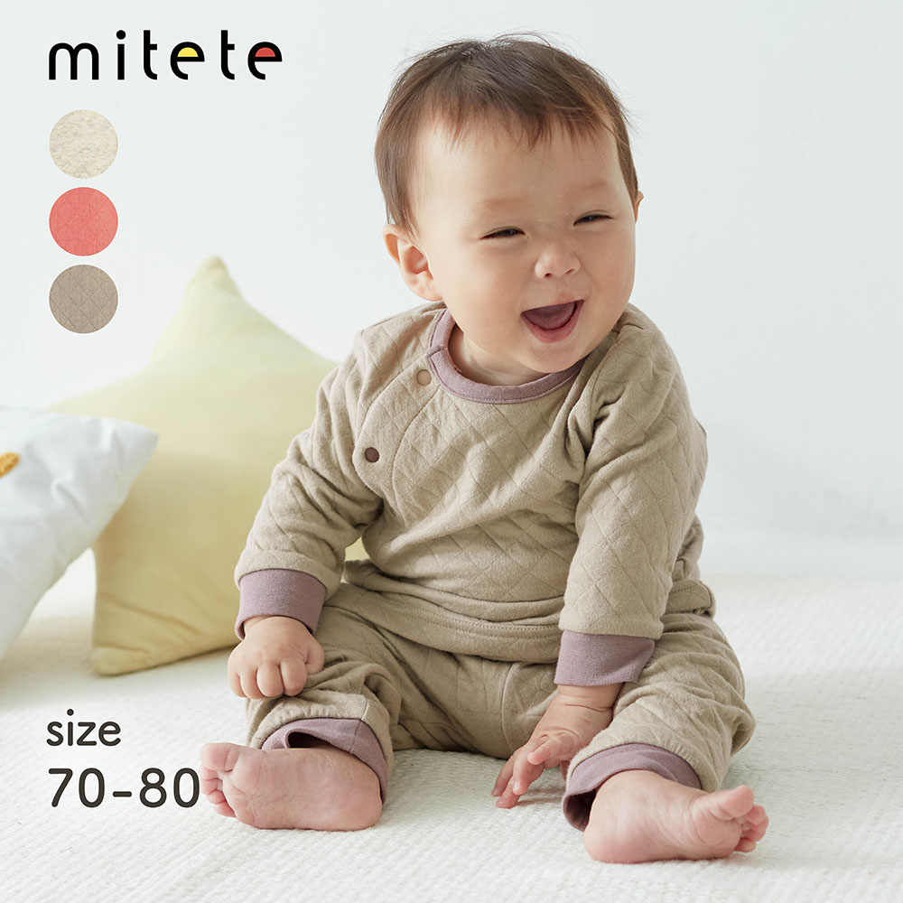 )  【ミテテ/mitete】腹巻付きニットキルトスナップボタン前開きパジャマ 【ベビーパジャマ】