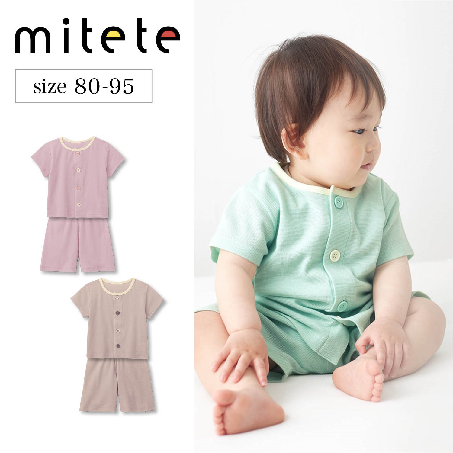 )  【ミテテ/mitete】【メッシュ素材で快適!】腹巻付き前開き半袖パジャマ 【ベビーパジャマ】