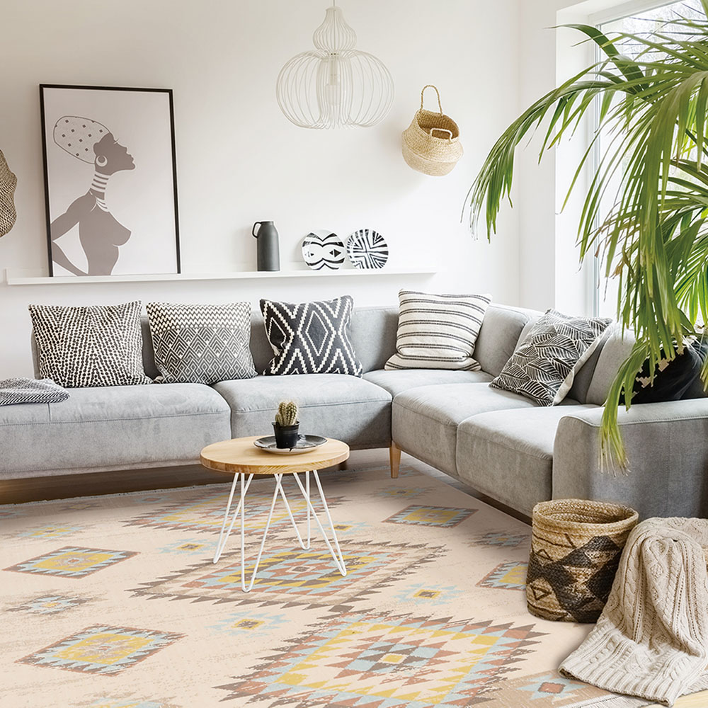 )  【ベルメゾン】ペールトーンのトライバル調ラグ