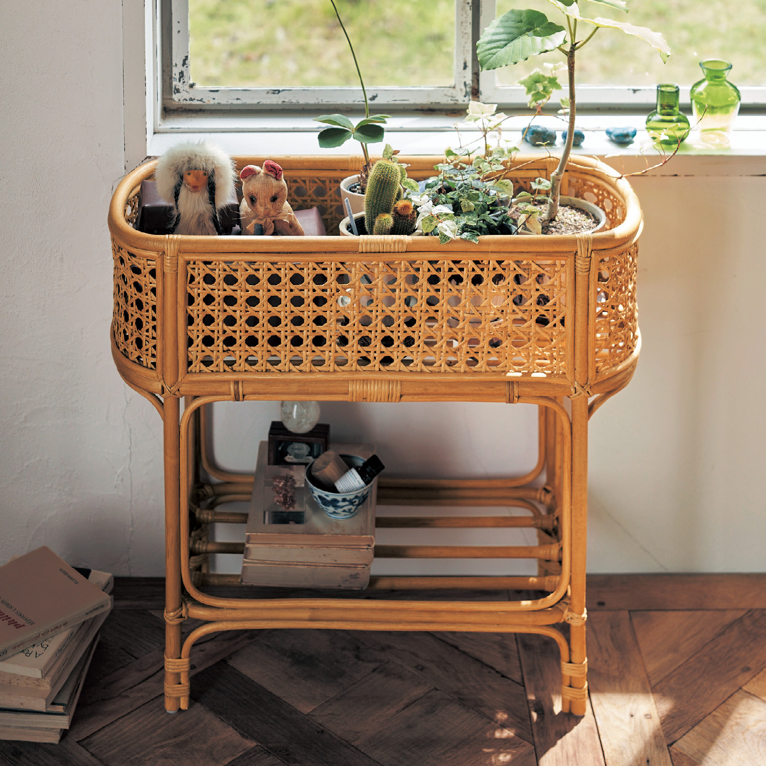 )  【ベルメゾン】ラタン風棚板がアクセントのサイドテーブル