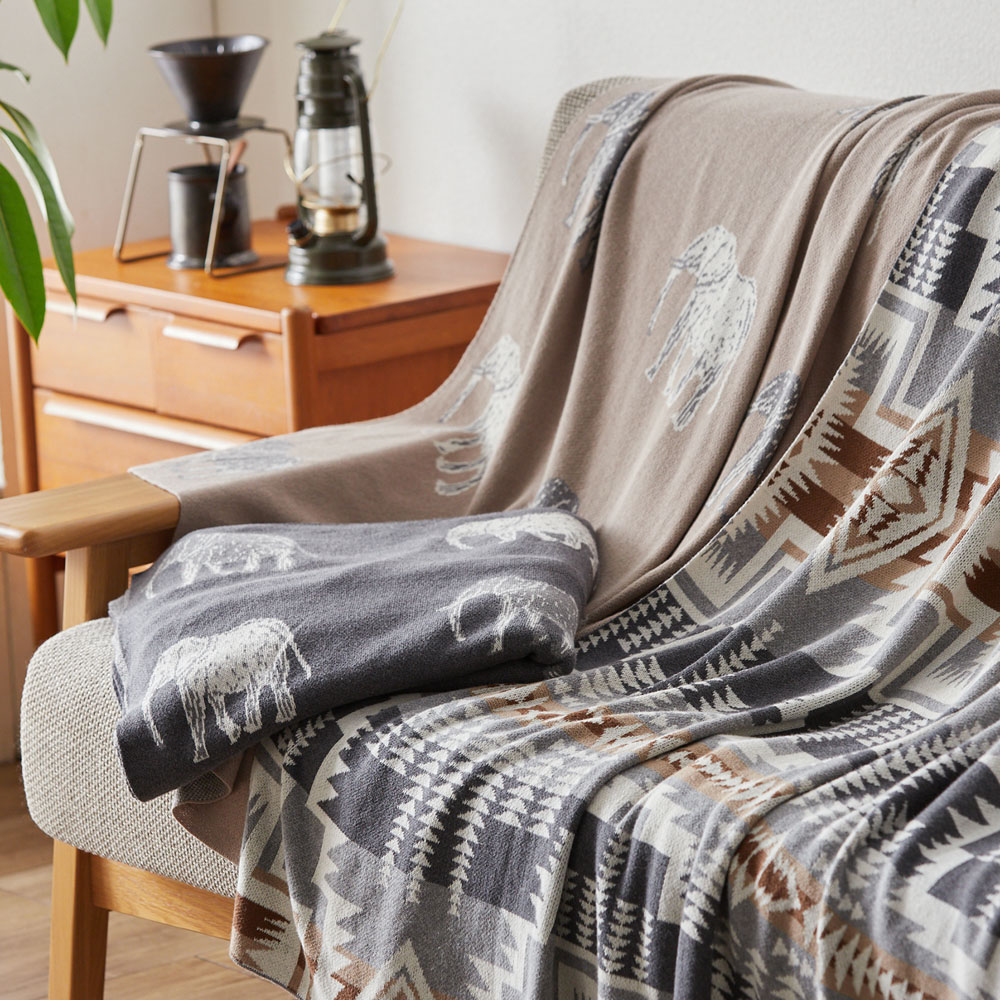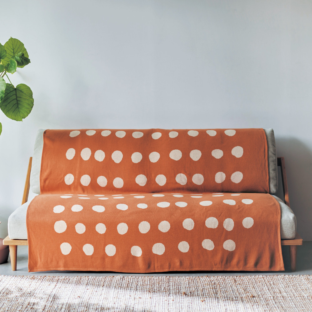 )  【ベルメゾン】綿素材を使ったエスニック柄のニットマルチカバー・ソファーカバー